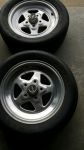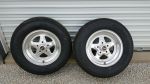 255/60/15 Mickey Thompson ET Street Radials I bought in 2013 and only used as a track tire. I think I was at the track twice with them, maybe 10 passes. They have been kept in heated storage through the winter. They are mounted on an older set of Weld Prostar rims. The rims are not show quality, they have some pitting but look fine from 5' away. I also have the front rims but the tires mounted on them are really old and need replacing. I think I have 19 lugnuts and some 1/4" spacers I used on my Chevelle. I paid over $400 for the tires alone. Will sell everything for $300.