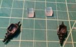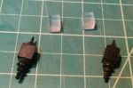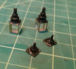This is my 1st go-around with making something presentable. I'm using the top & bottom finials (sawed off of the supplied), and cut some acrylic blocks. There's 3/32 brass angle on the corners. They're not as big as the prototypes though... but they fit in the footprint of the finials. (I really need a micro-lathe/jeweler's lathe... I could turn correct parts out of brass stock!)