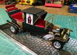 All in all it too is a pretty crappy kit - detail is minimal, and the molds were tired. AMT must have just banged these out to "ride the curl" when the show was the hottest thing on the tube. There's no real detail/parts for the suspension, the "ornate-work" is clunky, and the engine is dismal.