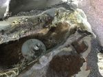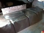 As some of you may know, I am replacing the upper trunk crossmember. Due to the generosity of parts and help from Mitch, Karl, Randy, and Keith . I wonder if anyone would care to comment on what I can use to make sure rust doesn't come though the on the upper trunk pan. I about 6 hrs stripping it of paint and rust with a drill and a 3M rust removal disc; but there are some little spots left that I wonder if I can just treat and paint. Here is a photo. I also am adding a few photos from the start to the present.