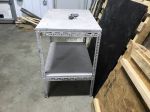 Lower cart with flat top is= 36x24, upper surface is 27" from floor
