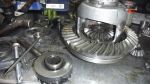 I checked the backlash and pattern before removing the 4.11 gear, the BL was high and the pattern was not very acceptable. Than pulled the diff assembly from the housing. Rather than pounding on the pinion to remove it, I decided to build a fixture to push the pinion and save the bearings from getting a beating. The fixture worked great.