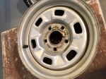 Set of 4 Rally 14" x 6" rims used on Heavy Chevy, Nova and Camaro Date code is H-15 6 9 if you are looking for numbers matching includes 3 rings and 3 caps, one of each is decent the others fair