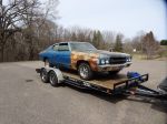 I bought this car about 4-5 years ago and had it stored at John T's place. He needed the room and with the new shed, I'm SUPPOSED to have room for all my "stuff", so it came home today.